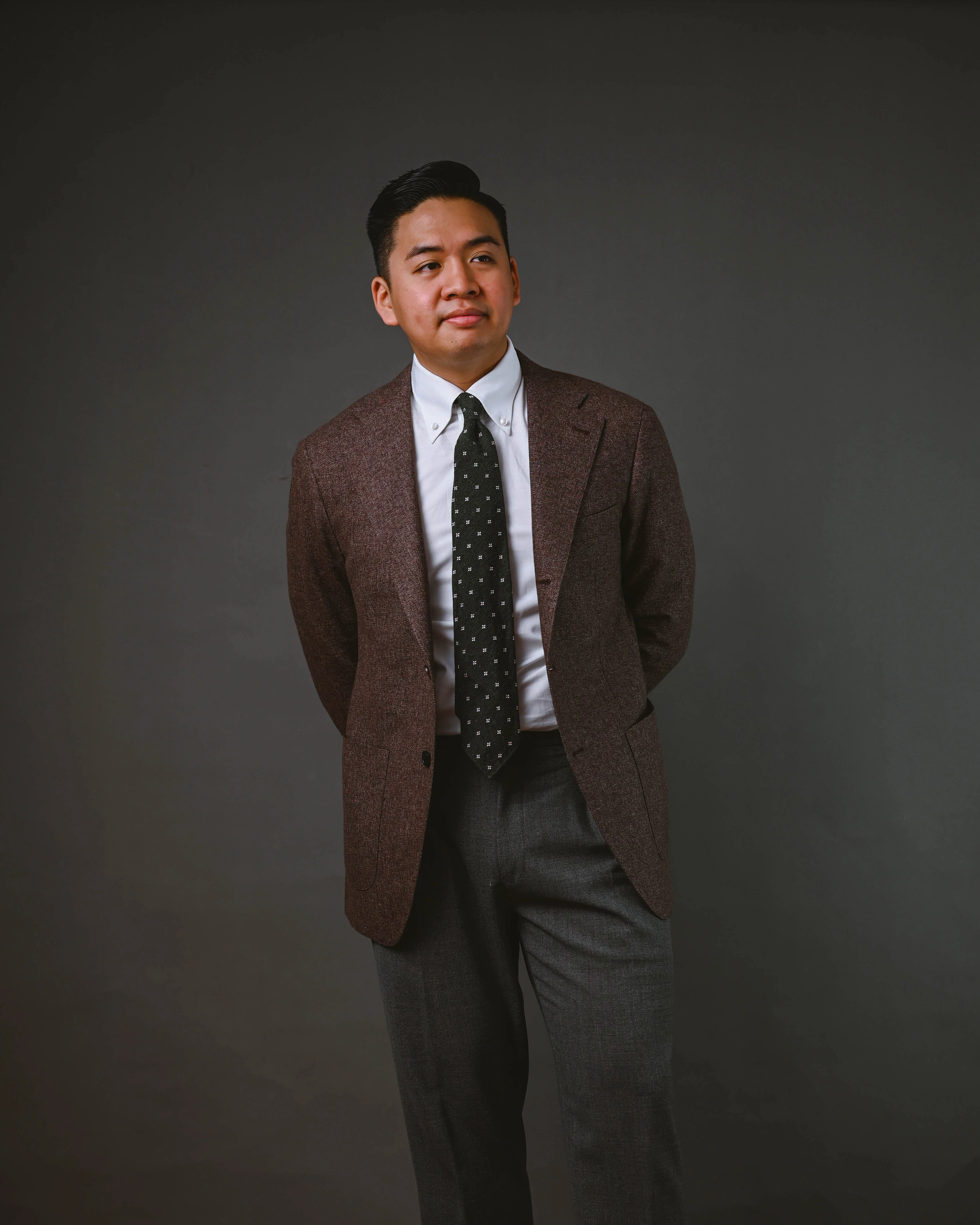 The Gino Model draws inspiration from the renowned Neapolitan style, characterised by its distinctive elements. Our Brown Cotton Wool Cashmere jacket showcases a 3-roll-2 buttoning stance and open quarters, creating a relaxed yet sophisticated look.Ā